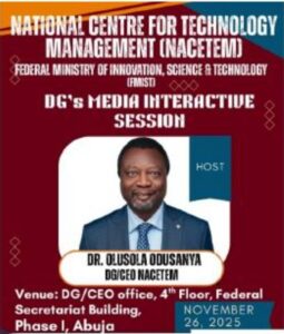Hence, the DG/CEO of NACETEM Dr. Olushola Odusanya held an interactive session with media stakeholders on the 26th of November, 2025. The program featured the DG’s remarks, questions and answers session, and interactive moment with journalists from five major media (both print and broadcast) organisations in Nigeria.
